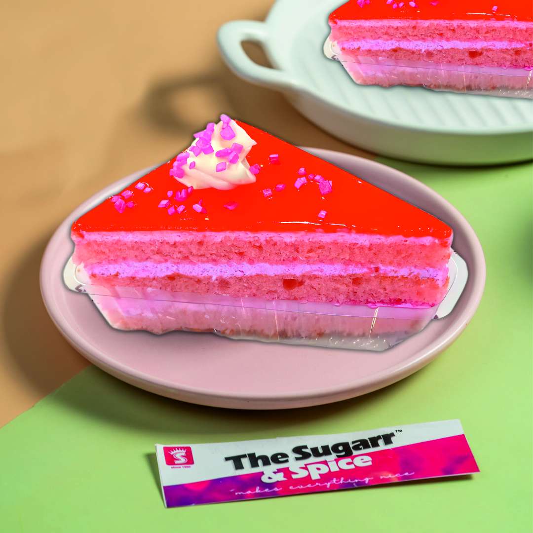 This Strawberry Pastry features soft and airy vanilla sponge, generously layered with rich strawberry cream for a fruity burst in every bite. A luscious layer of strawberry syrup adds extra juiciness, perfectly complementing the smooth texture. Finished with a glossy strawberry gel for that irresistible, berrylicious touch!
